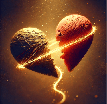 Two halves once whole, now torn apart,